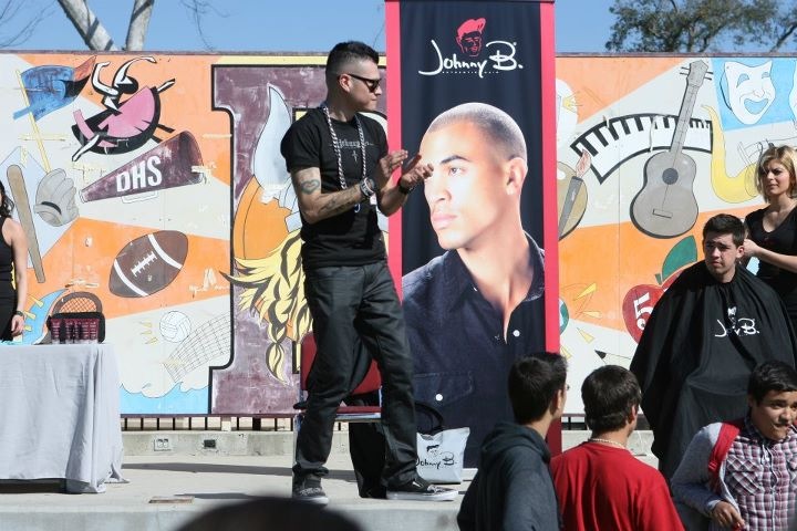 We travel to high schools each week to promote the Johnny B Hair Care line